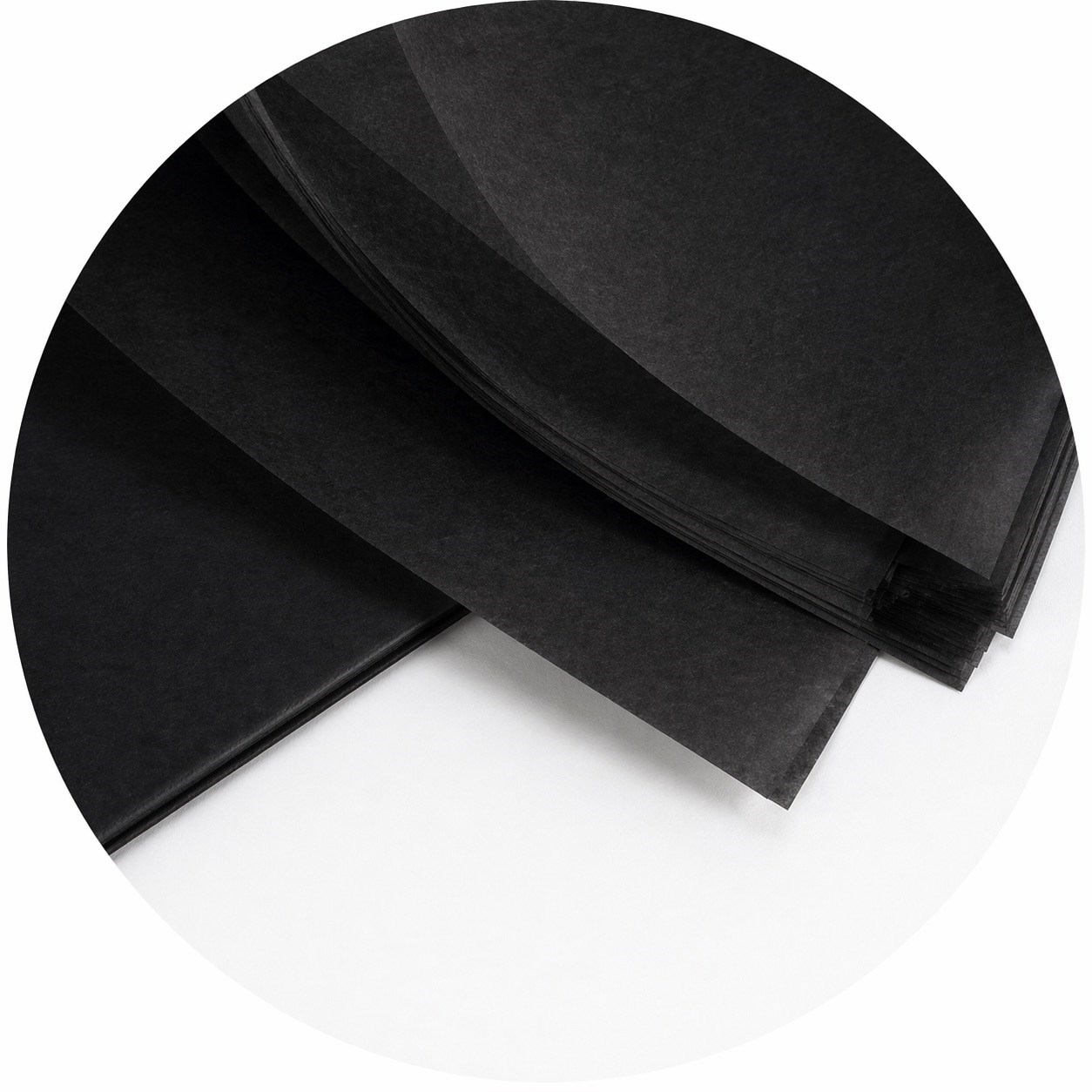 Zestaw bibuły dekoracyjnej w kolorze czarnym o wymiarach 50 × 75 cm zawiera 48 arkuszy lekkiego materiału do pakowania i dekoracji.