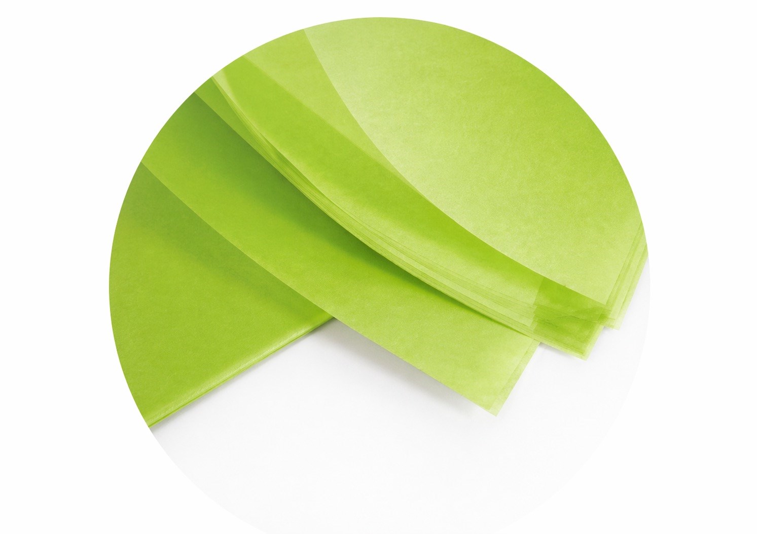 Zestaw bibuły dekoracyjnej w kolorze zielonym o wymiarach 50 × 75 cm zawiera 48 arkuszy lekkiego materiału do pakowania i dekoracji.