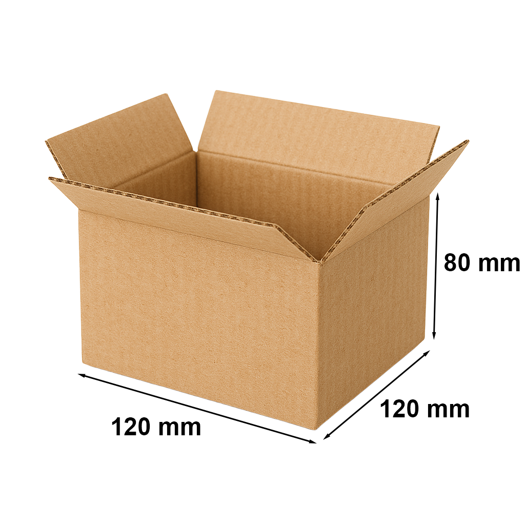 Wytrzymałe pudełko klapowe 120x120x80 mm wykonane z trwałej tektury falistej B320. Dzięki swoim niewielkim wymiarom idealnie sprawdza się do wysyłki mniejszych przedmiotów, gadżetów reklamowych, elektroniki drobnej czy artykułów higienicznych. To uniwersalne rozwiązanie dla sklepów internetowych, magazynów i punktów pakowania. W zestawie znajduje się 10 sztuk pudełek.