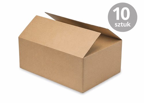 Zestaw 10 sztuk kartonów klapowych w kolorze brązowym o wymiarach 500×300×190 mm przeznaczonych do pakowania oraz transportu większych produktów. Wykonane z tektury 3-warstwowej o gramaturze 360 g/m² z falą B, zapewniają trwałość oraz odporność na uszkodzenia. Dodatkowo klasyczna konstrukcja klapowa ułatwia szybkie składanie i zamykanie kartonu.