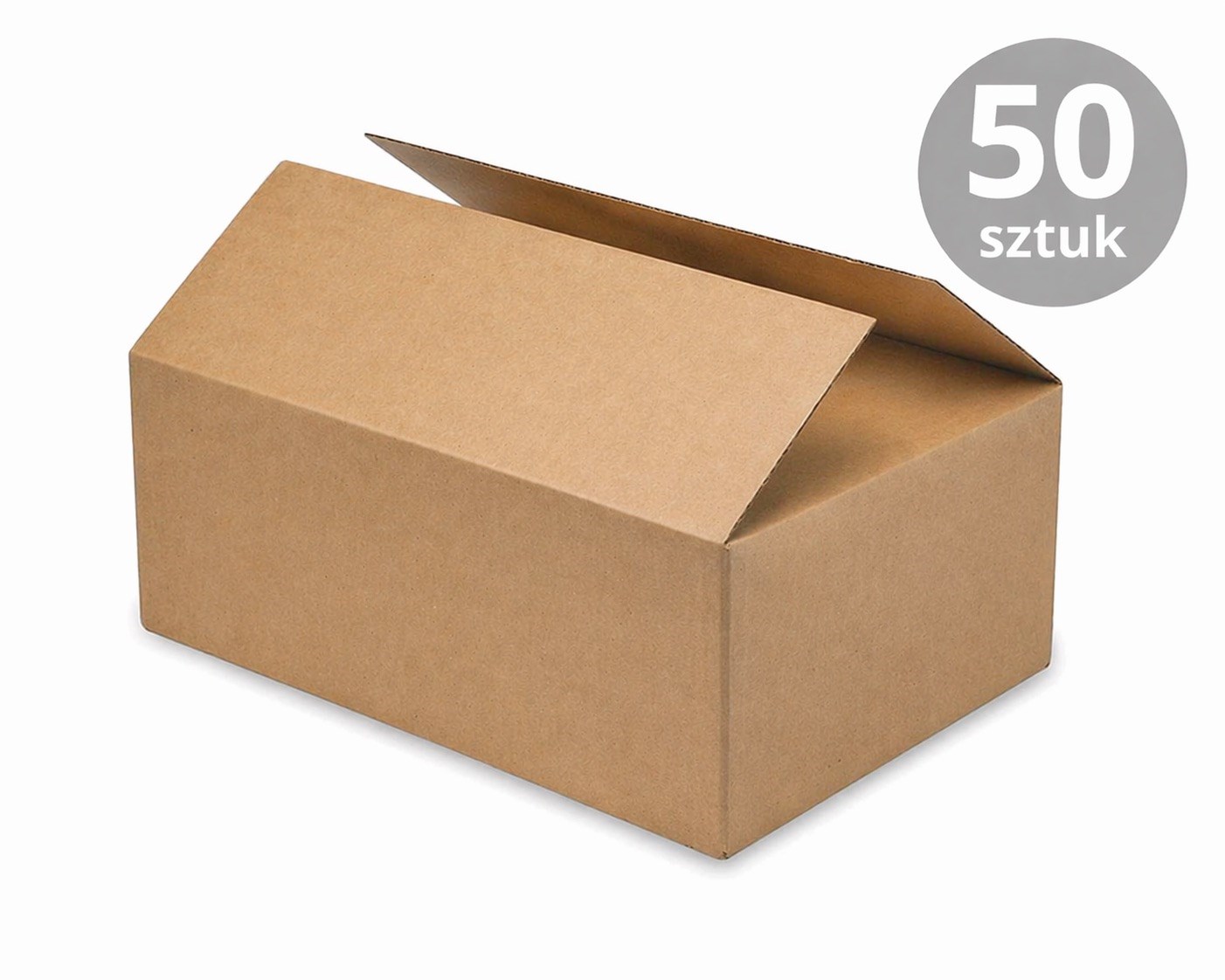 Zestaw 50 sztuk kartonów klapowych w kolorze brązowym o wymiarach 500×300×190 mm przeznaczonych do pakowania oraz transportu większych produktów. Wykonane z tektury 3-warstwowej o gramaturze 360 g/m² z falą B, zapewniają trwałość oraz odporność na uszkodzenia. Dodatkowo klasyczna konstrukcja klapowa ułatwia szybkie składanie i zamykanie kartonu.
