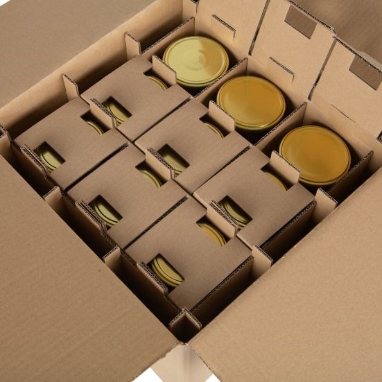 Estetyczny karton klapowy z kratownicą to eleganckie i praktyczne rozwiązanie do pakowania przetworów i produktów szklanych. Wymiary 350×350×230 mm pozwalają na bezpieczne umieszczenie 9 słoików w osobnych komorach, co minimalizuje ryzyko uszkodzeń podczas transportu. Wykonany z 5-warstwowej tektury EB o gramaturze 580 g/m², zapewnia wysoką sztywność i stabilność. Konstrukcja FEFCO 0201 oraz kratownica wewnętrzna gwarantują funkcjonalność i estetyczny wygląd, dzięki czemu karton idealnie nadaje się również na opakowanie prezentowe lub handlowe.