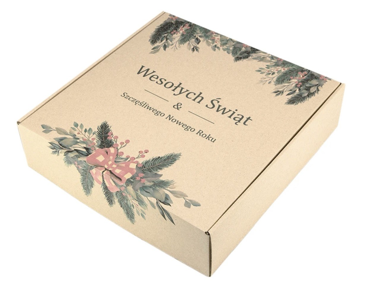 Karton fasonowy z nadrukiem świątecznym 300 × 300 × 80 mm – Stroik