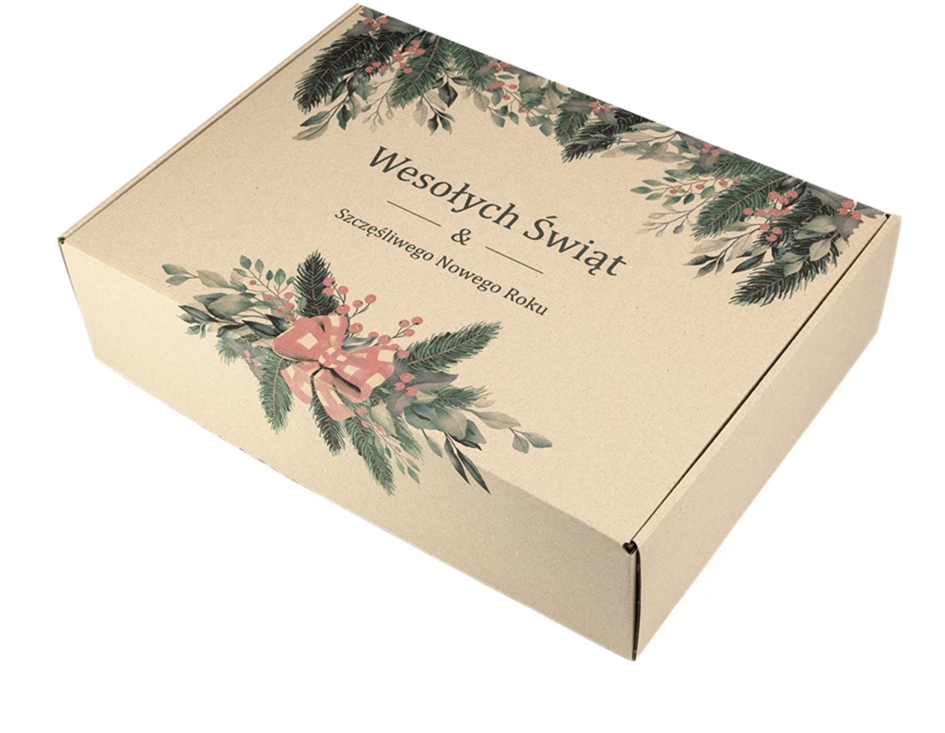 Karton fasonowy z nadrukiem świątecznym 350 × 250 × 90 mm – Stroik