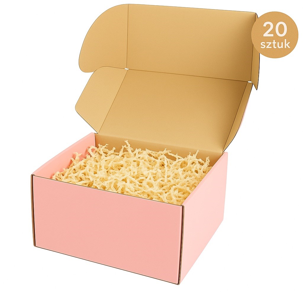 Karton fasonowy różowy 185 × 155 × 128 mm – fala E – 420 g/m² – pakiet 20 sztuk