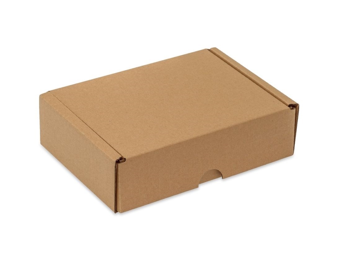 Wykonany z tektury falistej o gramaturze 450 g/m² zapewnia stabilność oraz bezpieczeństwo zawartości.