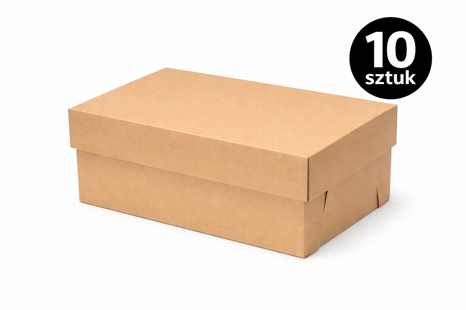 Zestaw 10 sztuk kartonów wykrojnikowych o wymiarach 320 × 220 × 130 mm przeznaczony do pakowania obuwia oraz produktów o podobnej wielkości.