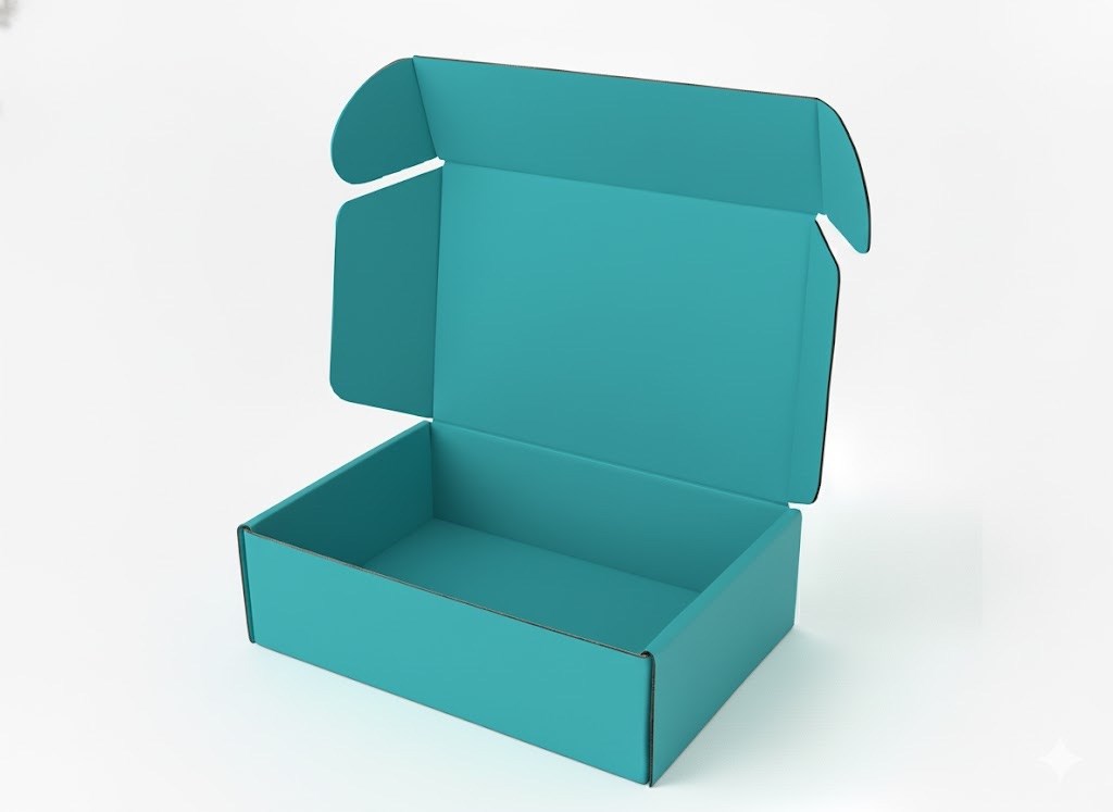 Stylowy karton kolorowy w odcieniu turkusowym to eleganckie i nowoczesne rozwiązanie dla marek, które chcą wyróżnić swoje produkty. Jego intensywna, świeża barwa dodaje przesyłce charakteru i sprawia, że opakowanie przyciąga uwagę. Karton w konstrukcji FEFCO 427 łatwo się składa, nie wymagając użycia taśmy. To idealne połączenie estetyki i funkcjonalności, doskonale sprawdzające się w branży modowej, kosmetycznej oraz prezentowej.