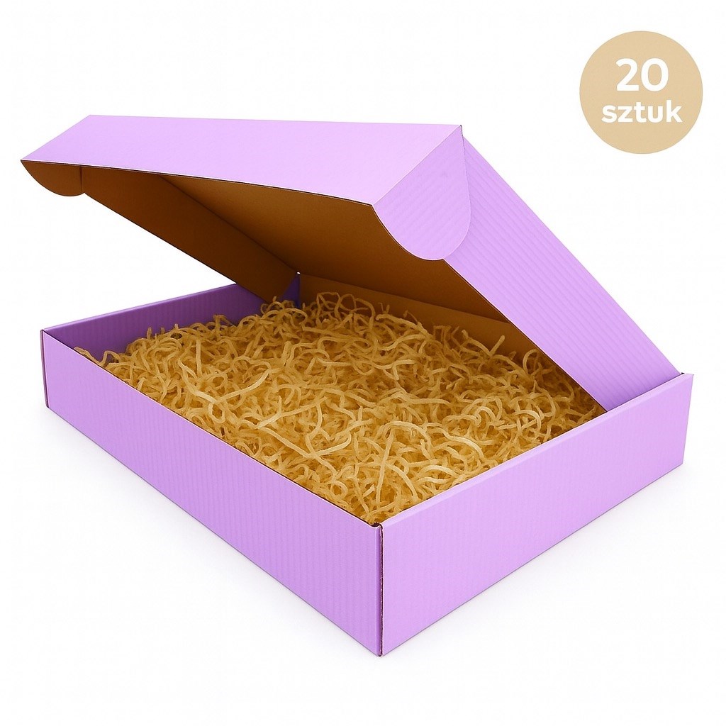 Karton fasonowy fioletowy 335 × 295 × 58 mm – fala E – 420 g/m² – pakiet 20 sztuk