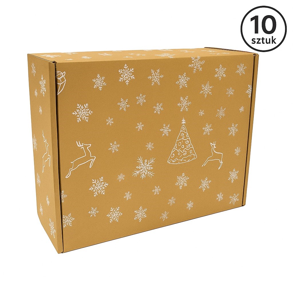 Karton fasonowy świąteczny 305x270x110 mm – Renifery, Śnieżynki, Choinki (10 sztuk)
