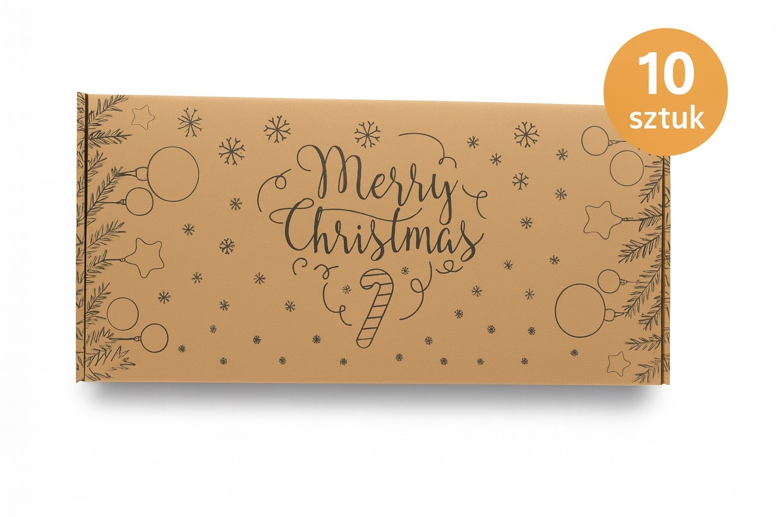 Zestaw 10 kartonów świątecznych MERRY CHRISTMAS 390x180x120 mm