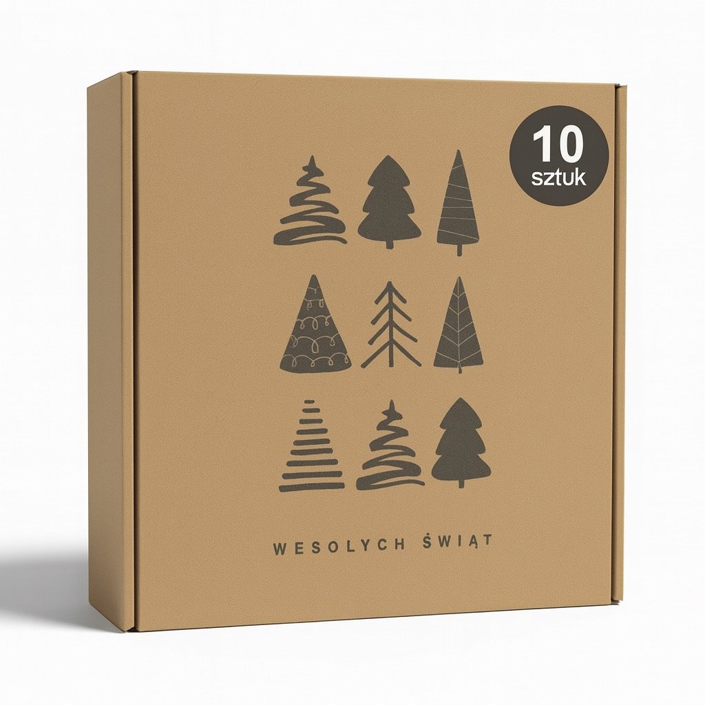 Zestaw 10 kartonów fasonowych z motywem choinek to doskonałe opakowanie, które od razu wprowadza świąteczny nastrój. Elegancki nadruk i naturalna kraftowa tektura sprawiają, że kartony są jednocześnie estetyczne, trwałe i ekologiczne. Idealne dla sklepów internetowych, firm oraz do prywatnych upominków.