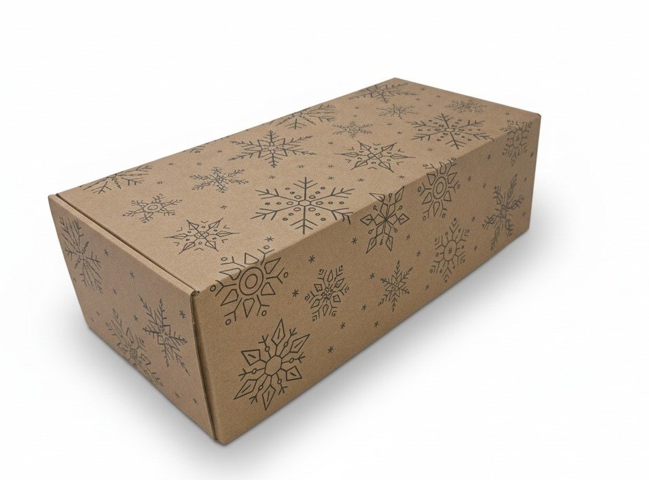 Zestaw 10 kartonów fasonowych z zimowym motywem śnieżynek to elegancka propozycja na czas świąt. Nadruk cyfrowy w połączeniu z kraftowym materiałem tworzy stylowe i ekologiczne opakowanie, które sprawdzi się jako prezentowe, wysyłkowe czy firmowe. Dzięki solidnej konstrukcji kartony łączą estetykę z funkcjonalnością.