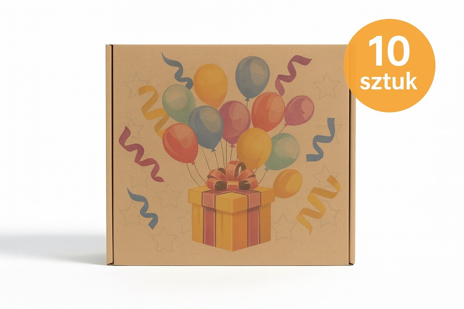 Zestaw 10 kartonów fasonowych z nadrukiem urodzinowym 370x340x90 mm