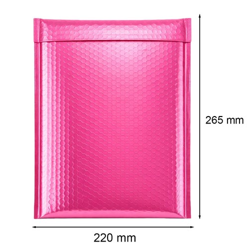 Metaliczna koperta w kolorze różowy to efektowne i praktyczne opakowanie do wysyłki drobnych produktów. Format 220×265 mm pozwala wygodnie zapakować dokumenty, akcesoria oraz niewielkie przedmioty. Błyszcząca powierzchnia sprawia, że przesyłka prezentuje się estetycznie i nowocześnie.
