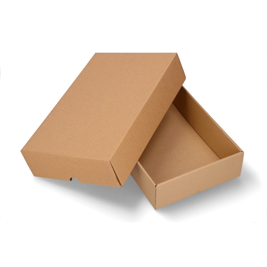 Karton wykrojnikowy z wieczkiem o wymiarach 350x200x100 mm w kolorze naturalny brąz to praktyczne rozwiązanie do pakowania i przechowywania produktów.