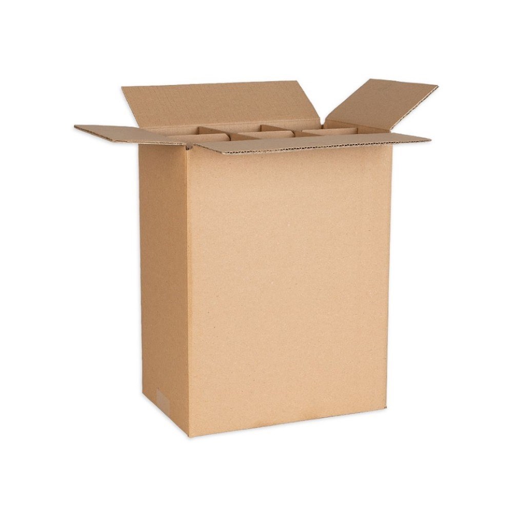 Solidne pudełko klapowe 260x170x340 mm wykonane z trwałej tektury falistej EB580, stworzone do bezpiecznego pakowania 6 butelek. Gruba pięciowarstwowa konstrukcja zapewnia wysoką odporność na ściskanie i uszkodzenia, dzięki czemu karton świetnie sprawdza się w transporcie i magazynowaniu. W zestawie znajduje się 10 sztuk pudełek.
