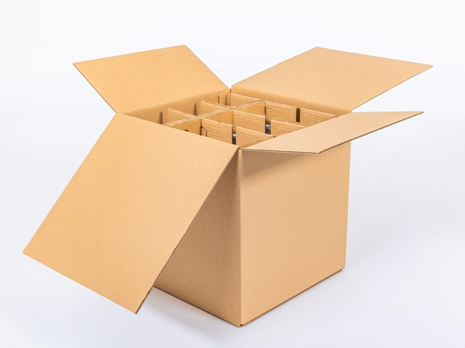 Solidne pudełko klapowe 353x342x370 mm wykonane z grubej tektury falistej EB580, zaprojektowane do bezpiecznej wysyłki dziewięciu butelek. Pięciowarstwowa konstrukcja zapewnia bardzo dobrą ochronę przed zgnieceniami i wstrząsami, co czyni ten karton idealnym rozwiązaniem do transportu alkoholi, win i napojów. Zestaw zawiera 10 sztuk wytrzymałych kartonów.