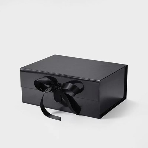 Czarne błyszczące pudełko magnetyczne A5 235×170×101 mm z wstążką