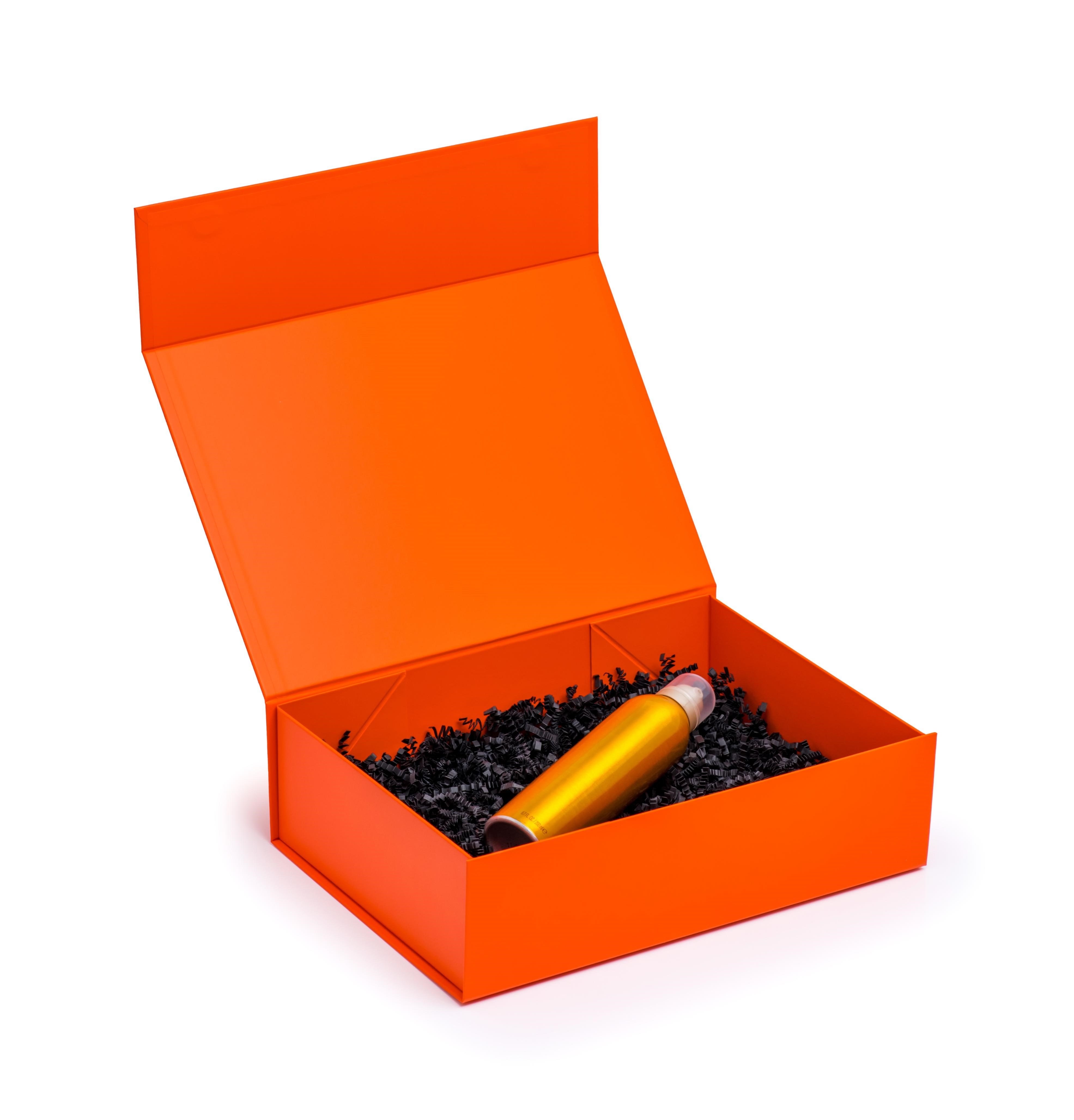 Pudełko magnetyczne 350x250x100 mm w kolorze pomarańczowym – mat i klej 3M