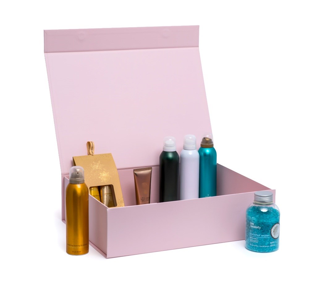Nowoczesne, płaskie pudełko A3 w kolorze pudrowego różu podkreśla wyjątkowy charakter pakowanych produktów. Dzięki magnetycznej klapce i wysokiej jakości materiałom, stanowi perfekcyjne rozwiązanie dla marek premium, które stawiają na elegancję i praktyczność.