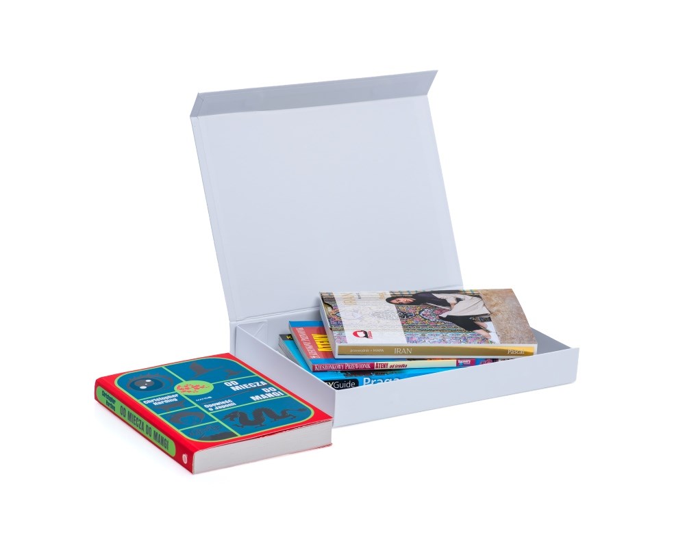 Średnie płytkie białe pudełko prezentowe z zamknięciem magnetycznym