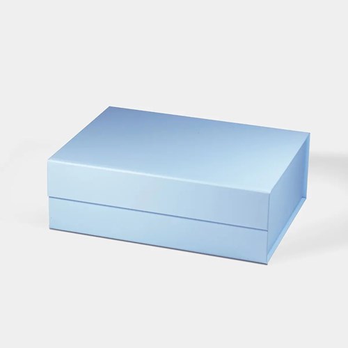 Błękitne pudełko magnetyczne w rozmiarze średnim wyróżnia się jasną, spokojną kolorystyką oraz minimalistyczną formą. Stonowany odcień nadaje opakowaniu lekkości i nowoczesnego charakteru, a ukryte magnesy w klapce zachowują estetyczną spójność konstrukcji. Proporcjonalny format sprawia, że pudełko doskonale prezentuje większe produkty bez potrzeby dodatkowych ozdób. To opakowanie, które podkreśla schludność i jakość zawartości.