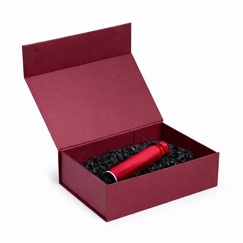 Pudełko przeznaczone jest do efektownej prezentacji produktów oraz tworzenia zestawów firmowych i prezentowych. Burgundowy kolor wzmacnia wrażenie jakości i ekskluzywności opakowania.