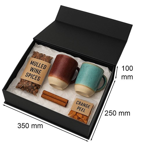 Dzięki solidnej konstrukcji z tektury litej o gramaturze 850 g/m², pudełko nie tylko wyglada luksusowo, ale także oferuje niezrównaną wytrzymałość. Wyróżnia się również nowoczesnym mechanizmem magnetycznego zamknięcia, który zapewnia szybki i łatwy dostęp do zawartości, chroniąc jednocześnie przed przypadkowym otwarciem.