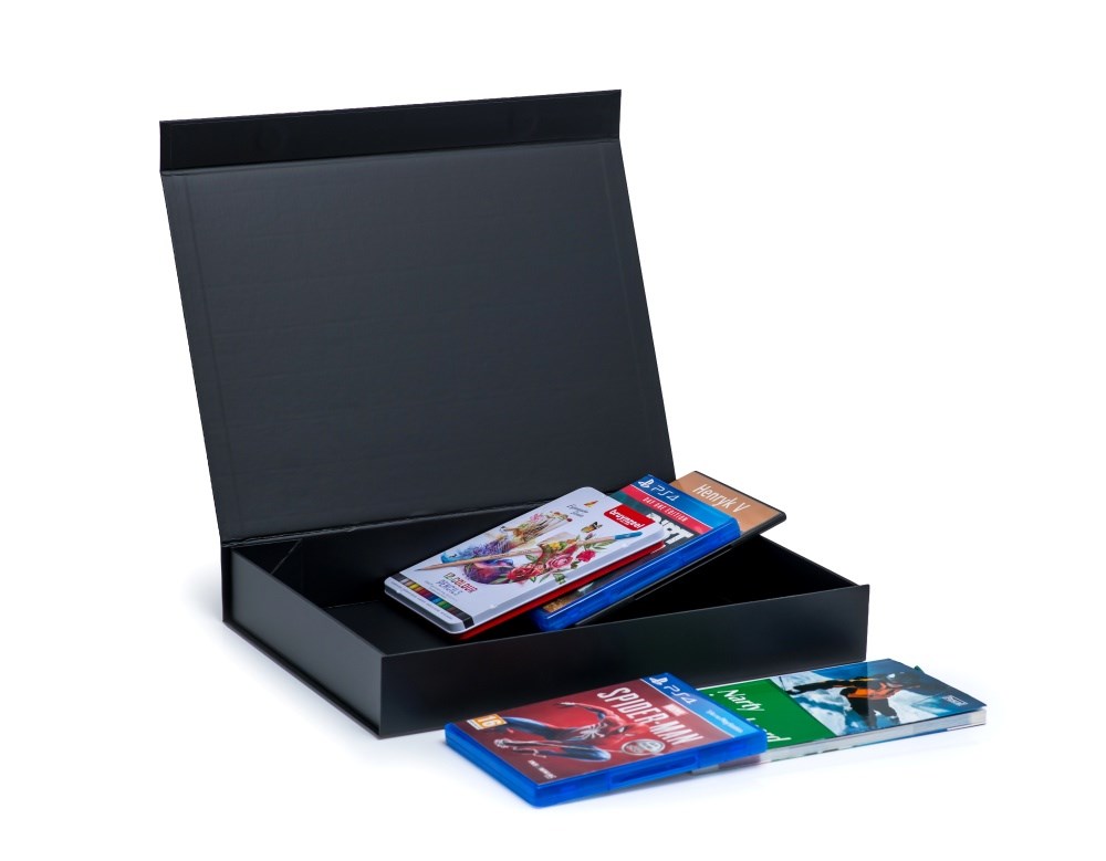 Eleganckie czarne pudełko prezentowe o płytkim profilu i dużym formacie to idealne rozwiązanie do stylowego pakowania odzieży, tekstyliów, dodatków oraz zestawów prezentowych. Składana konstrukcja i zamknięcie na magnes zapewniają zarówno estetykę, jak i funkcjonalność.