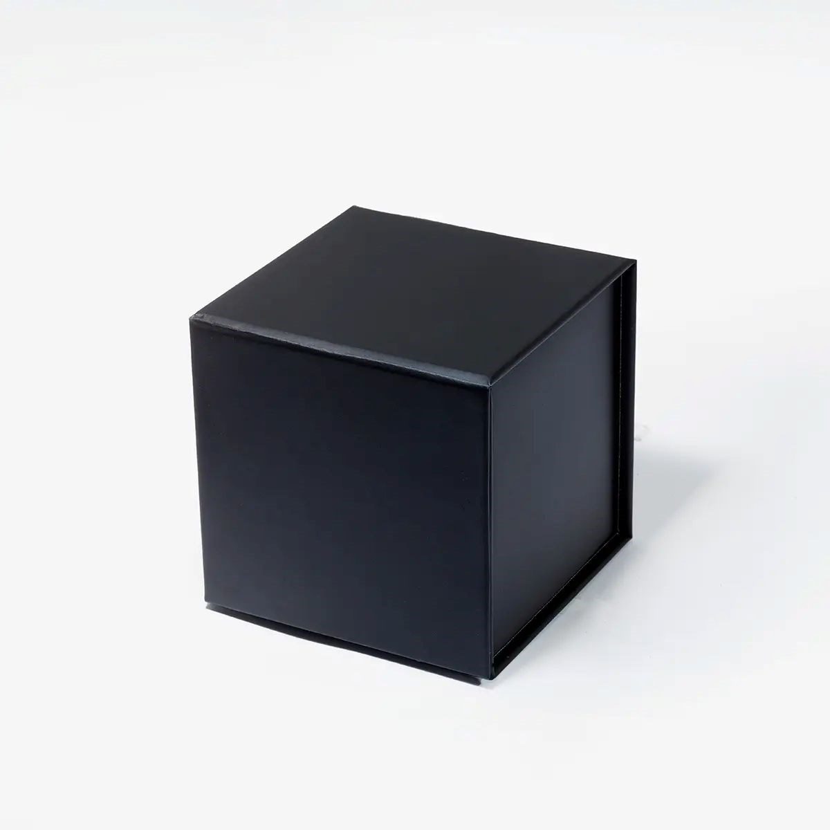 Matowa czerń nadaje pudełku wyrazisty i nowoczesny wygląd. Miniaturowa forma kostki prezentuje się proporcjonalnie i estetycznie. Gładka powierzchnia podkreśla minimalistyczny charakter opakowania. Dyskretnie ukryte magnesy tworzą spójną i elegancką bryłę.