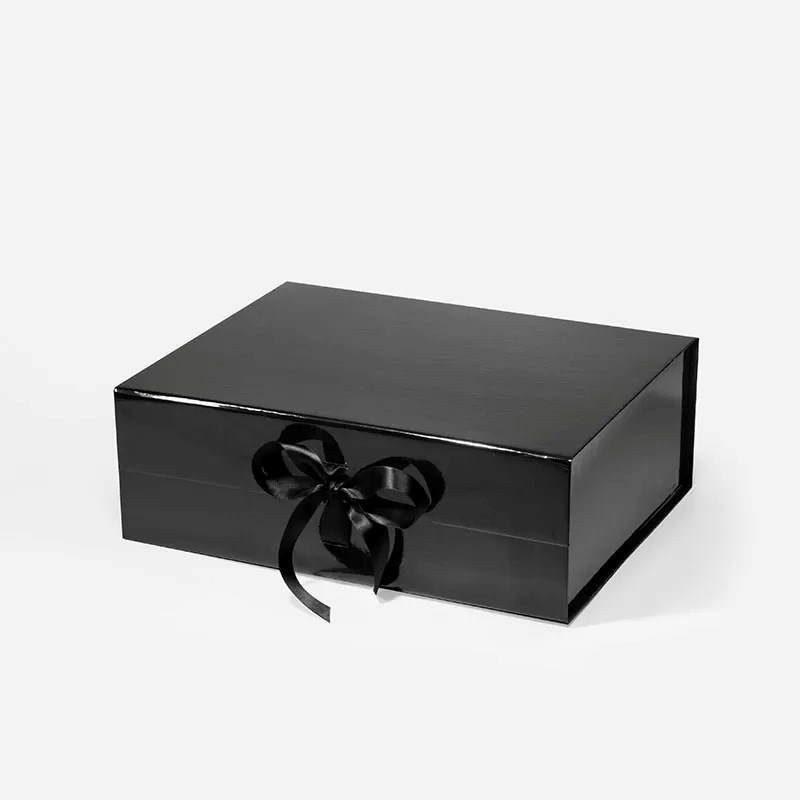 Pudełko prezentowe magnetyczne A4 czarne z połyskiem z wstążką 330×255×115 mm