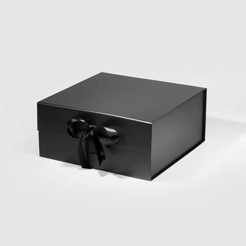 Pudełko prezentowe magnetyczne średnie kwadratowe czarne z wstążką 280×280×130 mm