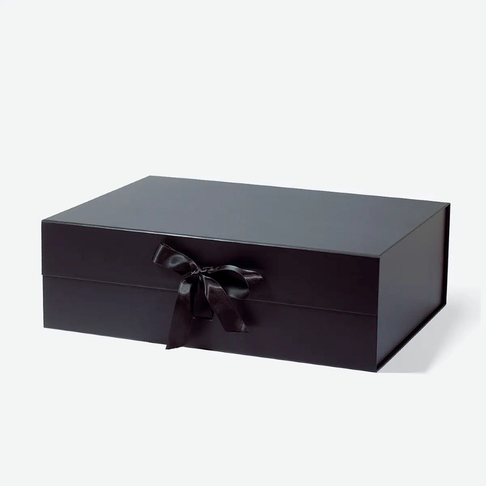 Pudełko magnetyczne B4 czarne z wstążką 410×305×130 mm