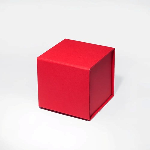 Głęboki czerwony kolor nadaje pudełku wyrazisty i elegancki wygląd. Miniaturowa forma kostki prezentuje się proporcjonalnie i estetycznie. Matowa powierzchnia podkreśla uporządkowany charakter opakowania. Dyskretnie ukryte magnesy zachowują spójną i minimalistyczną bryłę.