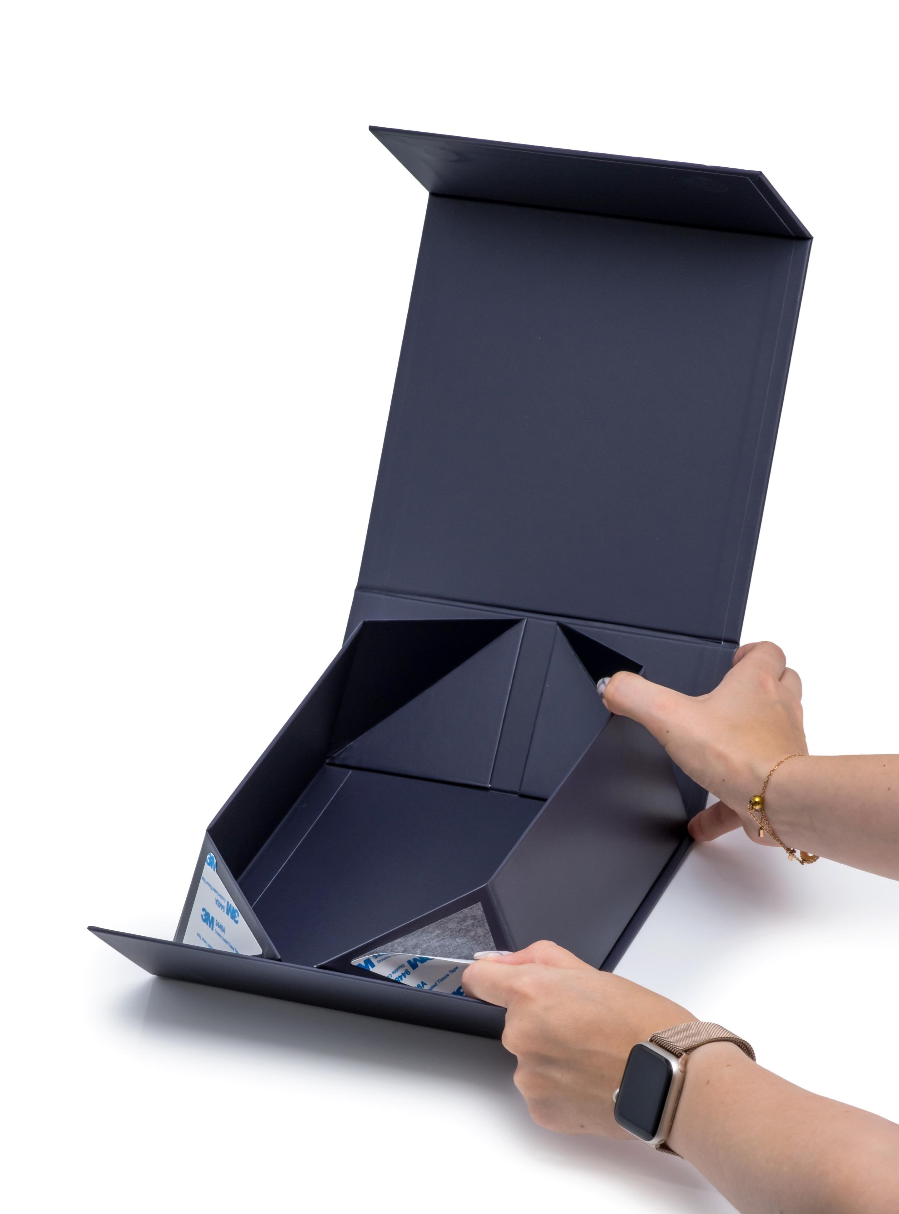 Kompaktowe pudełko magnetyczne w nowoczesnym odcieniu grafitu (zbliżonym do RAL 7024) to rozwiązanie, które łączy elegancki wygląd z funkcjonalnością. Dzięki klejowi 3M montaż jest prosty i trwały, a sztywna konstrukcja z litej tektury doskonale zabezpiecza zawartość i podkreśla profesjonalny charakter produktu.