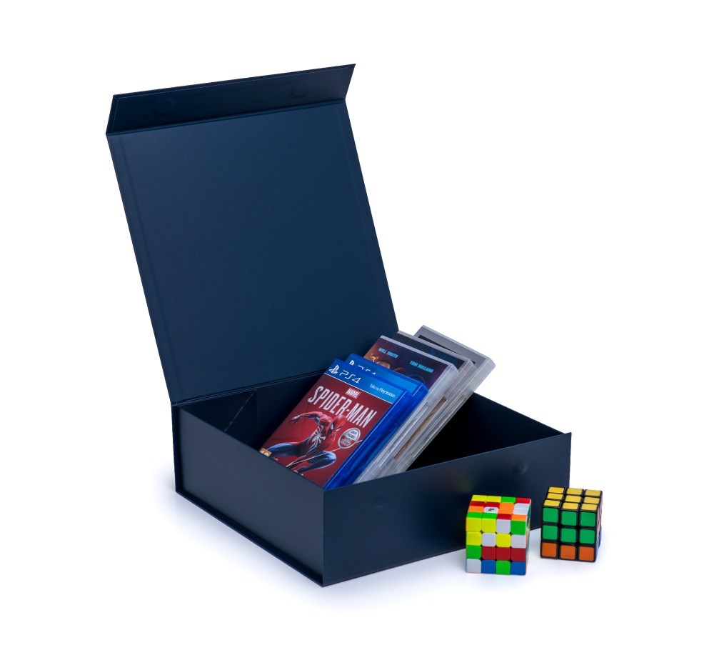 Kwadratowe granatowe pudełko prezentowe MA z zamknięciem magnetycznym