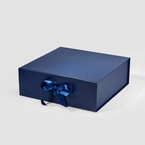 Pudełko magnetyczne A4 kwadratowe granatowe z wstążką 330×330×115 mm