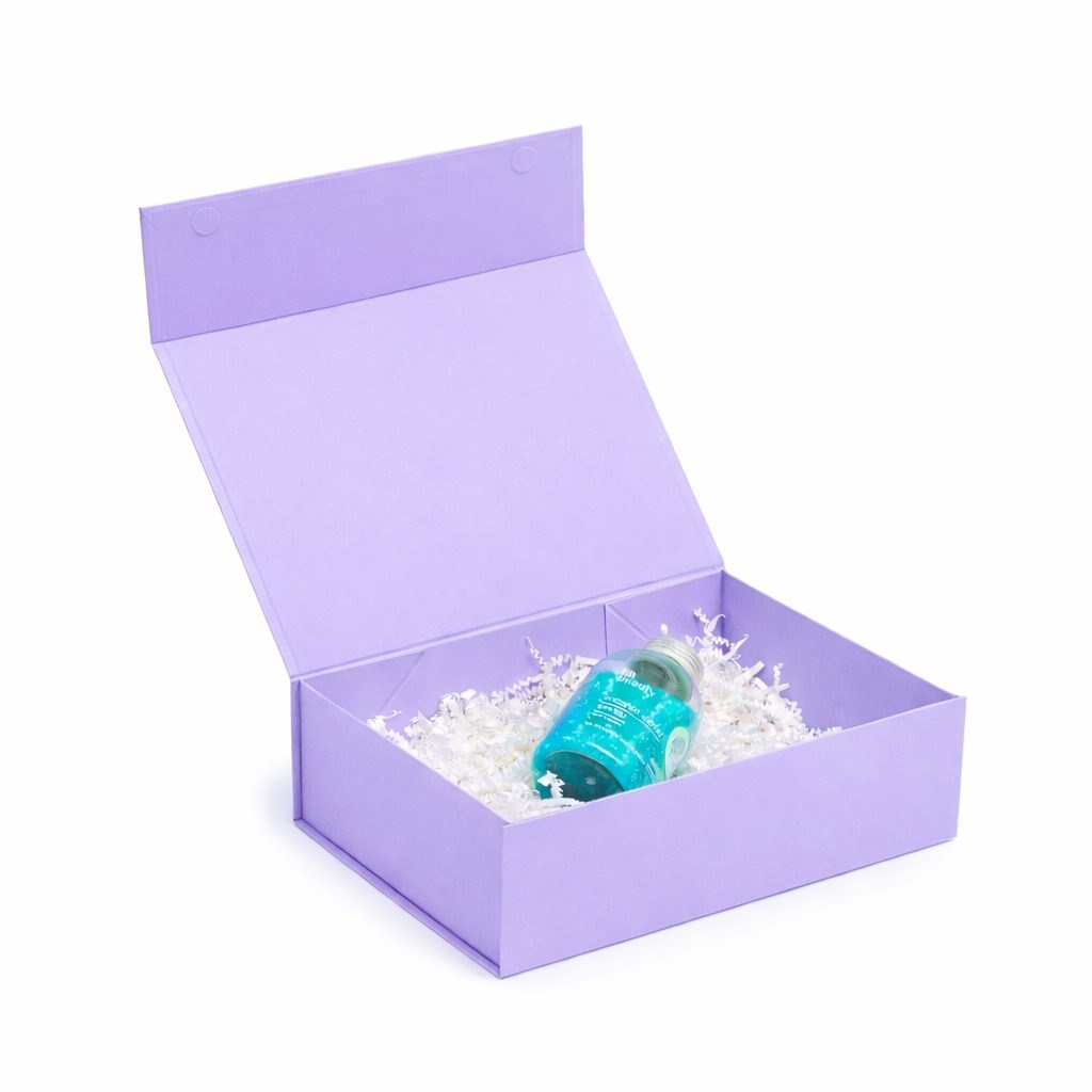 Opakowanie polecane do prezentacji produktów, w których liczy się subtelna estetyka i spójny wygląd. Liliowy kolor Pantone 14-3812 tworzy jasną, elegancką bazę dla zestawów firmowych oraz produktów z segmentu premium. Pudełko sprawdzi się w sprzedaży detalicznej oraz w kompletach okolicznościowych.