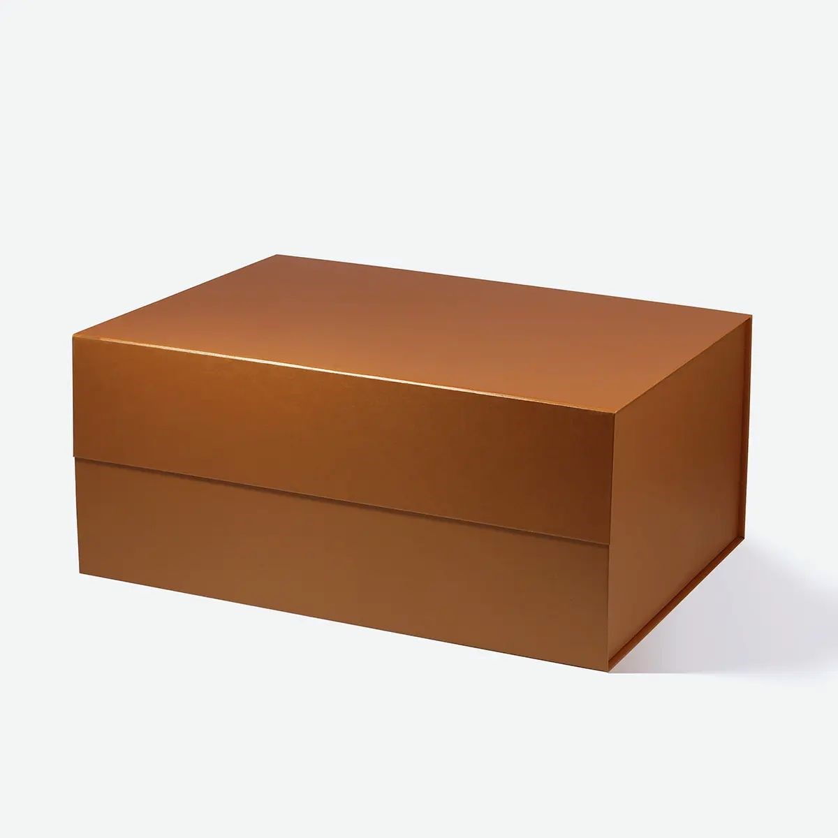 Miedziany odcień nadaje pudełku wyrazisty i elegancki wygląd. Duża, głęboka bryła prezentuje się solidnie i imponująco. Matowa powierzchnia podkreśla nowoczesny charakter opakowania. Ukryte magnesy zachowują spójną i estetyczną formę.