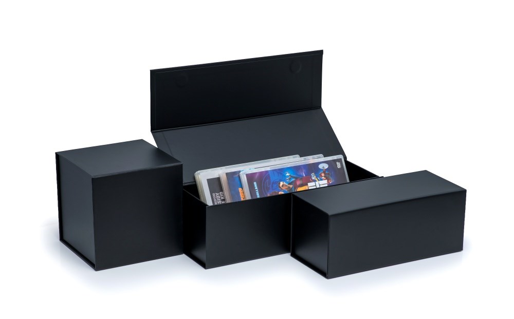 Stylowe, krótkie pudełko prezentowe w kolorze czarnym, stworzone do eleganckiego i bezpiecznego pakowania pojedynczych butelek wina lub innych płynów. Wytrzymała, składana konstrukcja oraz pełne magnetyczne zamknięcie zapewniają wygodę użytkowania oraz ochronę zawartości.