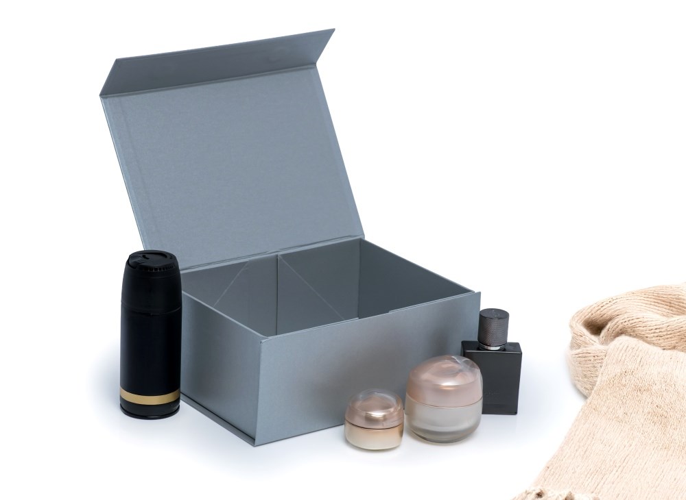 Pudełko prezentowe A5 w kolorze perłowo-srebrnym z zamknięciem na magnes
