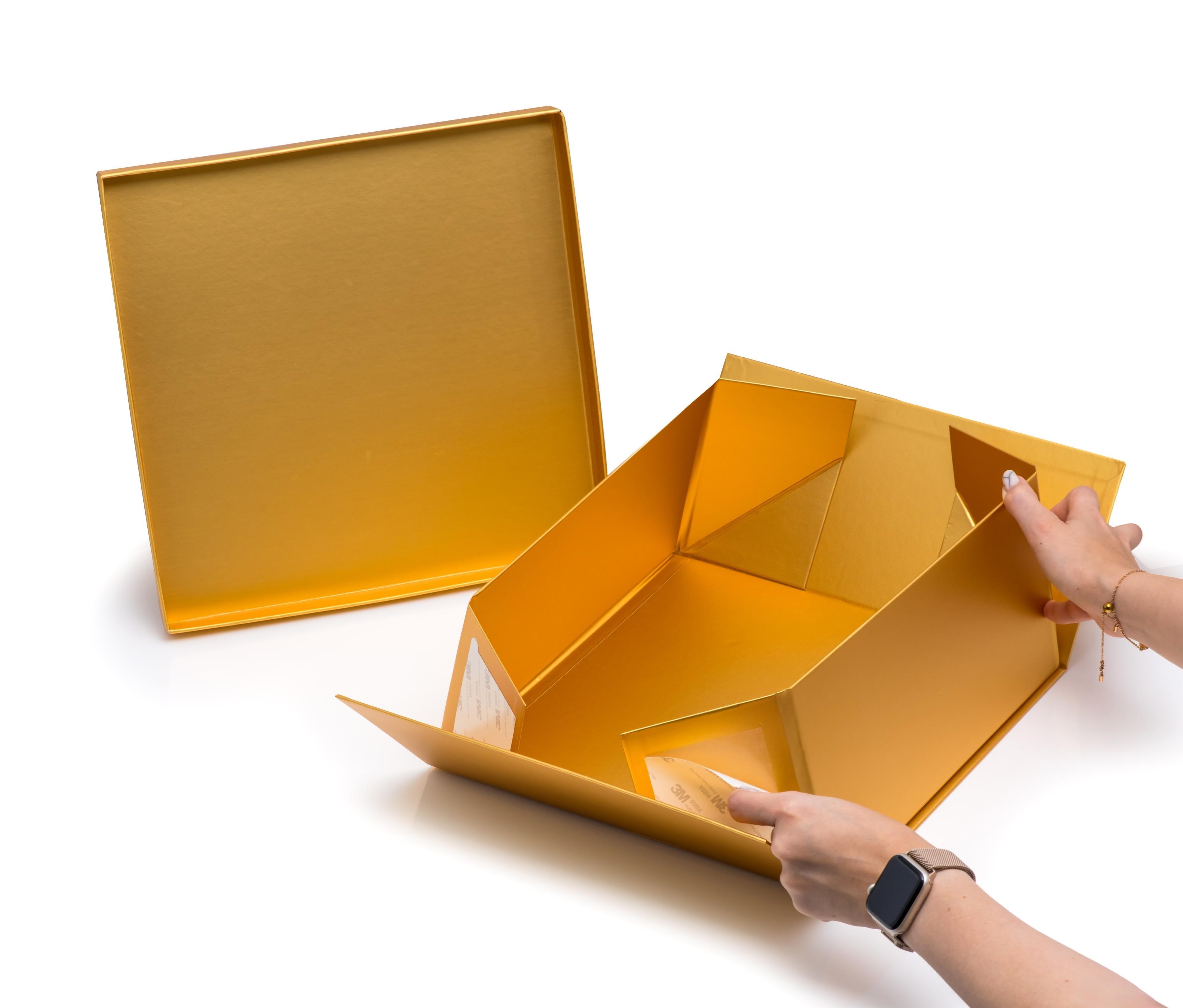 Składane pudełko z wieczkiem 300x300x140 mm w kolorze złotym z teksturą