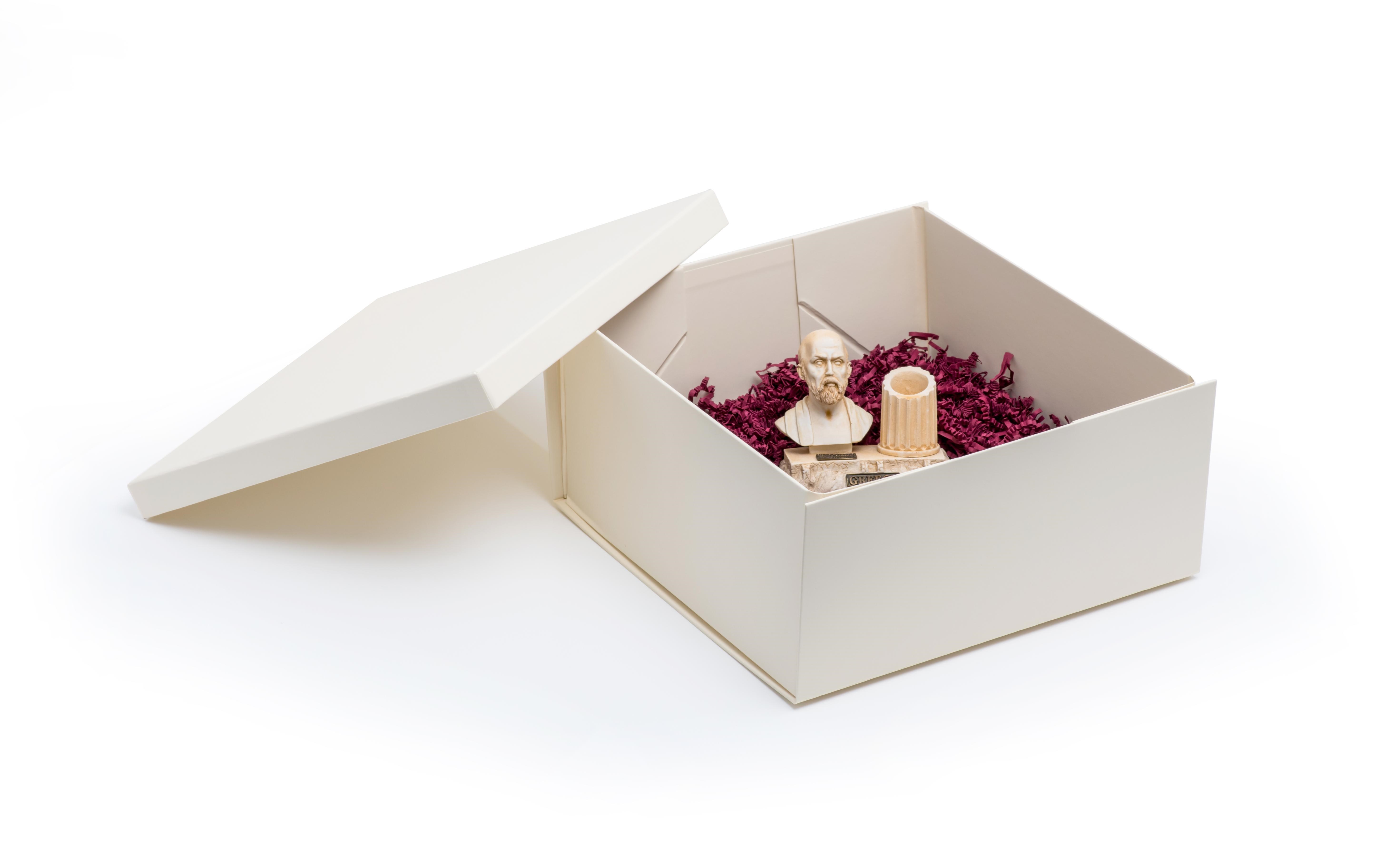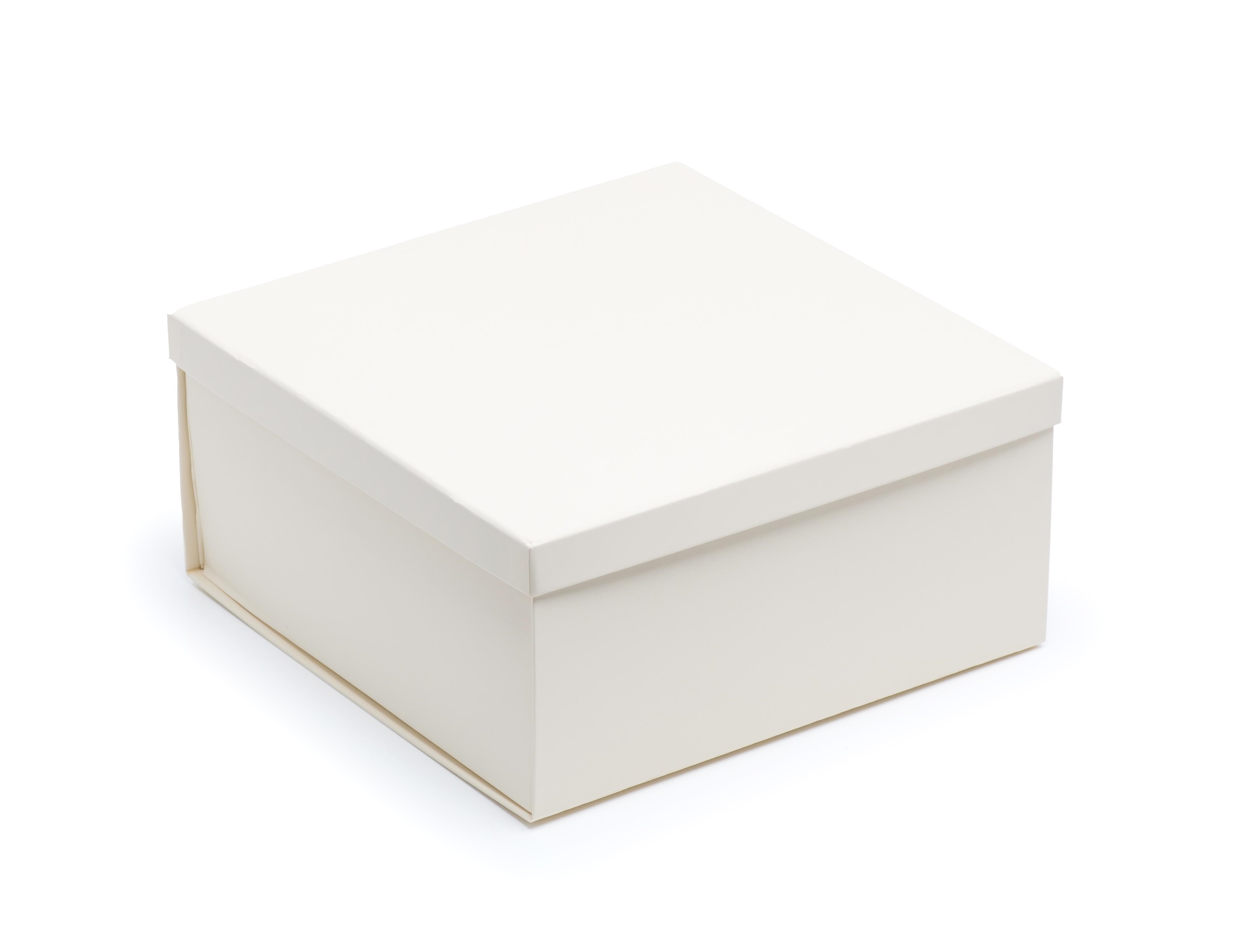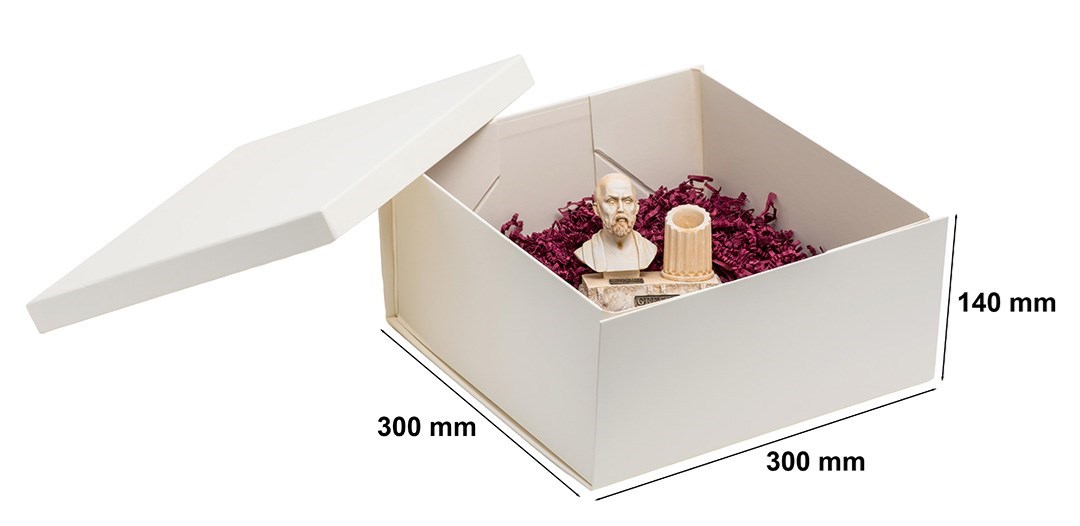Składane pudełko z wieczkiem 300x300x140 mm w kolorze kości słoniowej– ekskluzywny papier specjalny