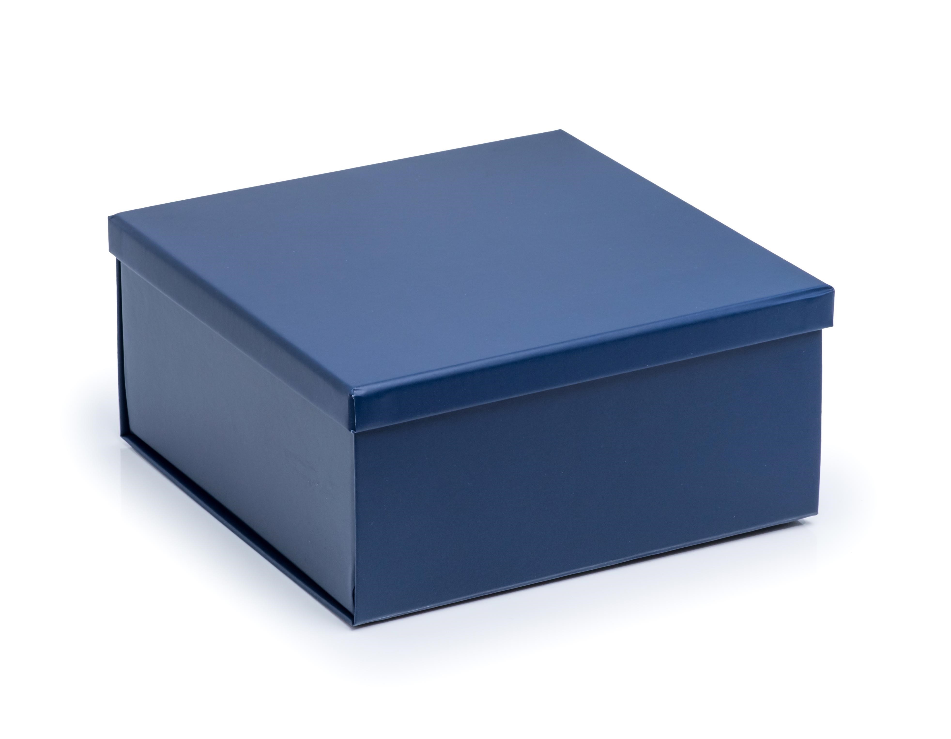 Składane pudełko z wieczkiem 200x200x90 mm w kolorze granatowym matowym
