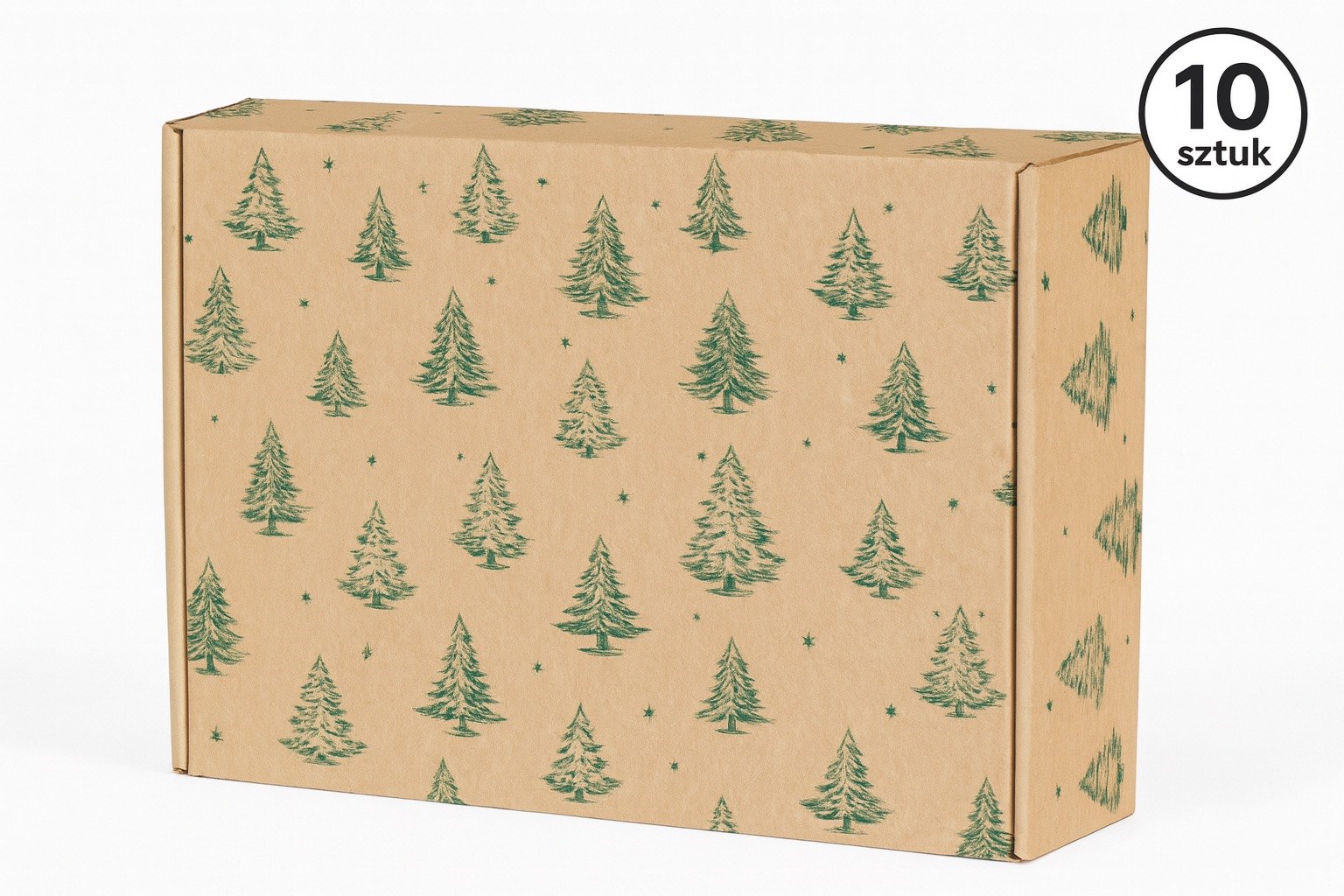Pudełko świąteczne fasonowe 200x150x50 mm – choinka „ŚWIĘTA” (10 sztuk)