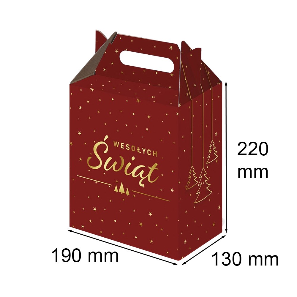 Daj się ponieść magii Świąt dzięki wyjątkowemu świątecznemu pudełku, które podkreśli wyjątkowy charakter każdego prezentu. Ekskluzywny nadruk oraz praktyczna rączka dodają uroku tego jednoczęściowego opakowania, idealnego na mikołajkowe i gwiazdkowe zestawy upominkowe.