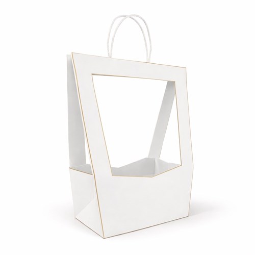 Prosta forma oraz odpowiedni rozmiar sprawiają, że torba świetnie nadaje się do bukietów, roślin oraz upominków.