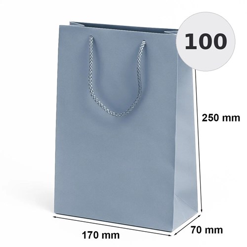 Funkcjonalna torba laminowana w kolorze srebrny o wymiarach 170×70×250 mm umożliwia wygodne pakowanie produktów oraz materiałów promocyjnych.