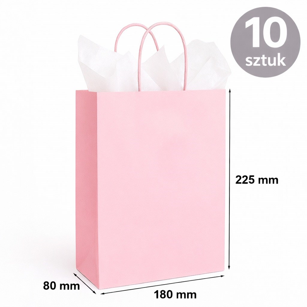 Torba Papierowa Kraft Jasny Różowy 180×80×225 mm (10 sztuk)